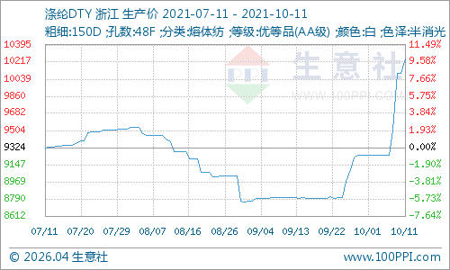 国庆假期间全球能源危机继续发酵,国际原油价格上涨,化工板块整体偏强运行,带动聚酯产业链。同时受江浙地区能耗双控影响,聚酯织造开工负荷进一步下滑至80%以下,货源供应紧张,以消耗库存为主。涤纶长丝各产品价格大幅拉涨,较国庆节前涨幅7-10%不等,现金流得到一定恢复。