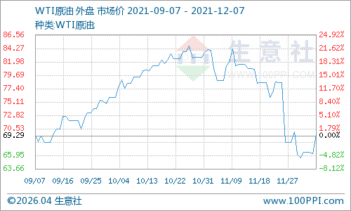 12月6日,国际油价大幅上涨。美国WTI原油期货主力合约结算价报69.49美元/桶,涨幅3.23美元或4.87%,布伦特原油期货主力合约结算价报73.08美元/桶,涨幅3.20美元或4.57%。南非报道,当地奥密克戎(Omicron)感染病例症状轻微,此前市场一度担忧破坏石油需求,油价迎来报复性反弹。另外,伊核谈判陷入僵局,伊朗石油重返市场可能性降低,原油也一定程度上获得支撑。