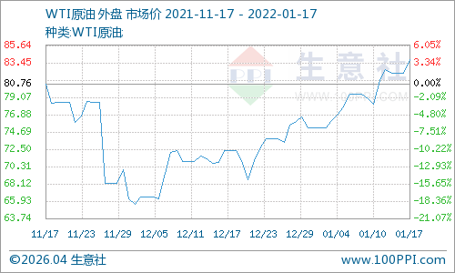 受供应趋紧利好支撑,产油国增产困难叠加俄罗斯和乌克兰地缘紧张等因素助力油价上行。截止1月14日,美国WTI原油期货主力合约结算价报83.82美元/桶,布伦特原油期货主力合约结算价报86.06美元/桶。