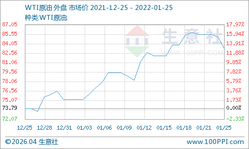另外,1月25日油价强劲反弹,WTI涨幅明显,近3%。美国WTI原油期货主力合约结算价报85.60美元/桶,涨幅2.29美元或2.8%,布伦特原油期货主力合约结算价报88.20美元/桶,涨幅1.93美元或2.2%。主因供应端风险给油价带来提振,乌克兰和俄罗斯局势紧张,叠加阿联酋此前遭遇袭击,目前风险仍未解除,石油输出国组织OPEC增产困难等。