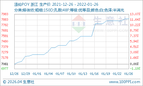 生意社分析师认为,原油反弹,部分PTA装置计划检修对冲即将计划投产的新产能,因此成本支撑走强。但春节临近终端纺织工厂开工率将进一步走低,需求端偏弱,预计涤纶长丝价格存下行风险。