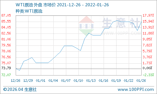 另外,1月25日油价强劲反弹,WTI涨幅明显,近3%。美国WTI原油期货主力合约结算价报85.60美元/桶,涨幅2.29美元或2.8%,布伦特原油期货主力合约结算价报88.20美元/桶,涨幅1.93美元或2.2%。主因供应端风险给油价带来提振,乌克兰和俄罗斯局势紧张,叠加阿联酋此前遭遇袭击,目前风险仍未解除,石油输出国组织OPEC增产困难等。
