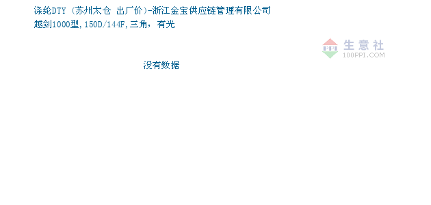 05月17日苏州太仓关于 涤纶DTY的报价为9410元/吨。 涤纶DTY的规格:越剑1000型,150D/144F,三角,有光。该报价有效期为1天。报价提供方:浙江金宝供应链管理有限公司。
