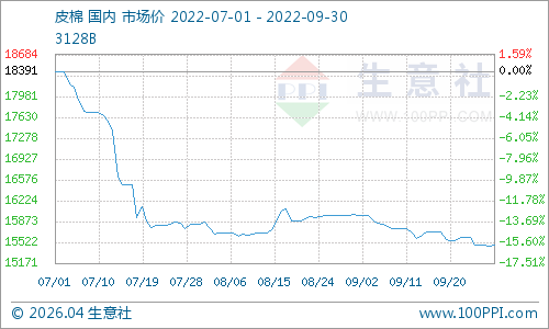 USDA在9月中旬公布了最新的供需报告,报告显示,从全球来看,2022/23年度,全球棉花产量和期末库存较8月份均环比增加,消费量环比减少。国内结转库存高位,叠加新疆棉进入采摘期,市场预期新疆棉22/23年度产量在580万吨附近。需求方面,贸易商针对冬季订单及电商节采购补库,企业接单情况好转,但仍以短单、小单为主,旺季特征不明显。供大于求的局面在短期难以改变,国内棉花价格延续跌势,截止9月30日国内棉花(3128B)市场均价在15479元/吨,较月初下跌3.16%。