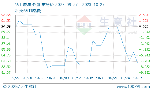 近期原油价格围绕巴以冲 突以及需求走弱预期高位震荡反复,10月26日,美国WTI原油期货主力合约结算价报83.21美元/桶,布伦特原油期货主力合约结算价报87.05元/桶。恒力220万吨PTA装置延期重启并缩减合约货,货源供应缩减,本周国内PTA市场行情止跌小幅回暖,截止10月27日华东地区市场均价5875元/吨,较周初上涨0.42%。