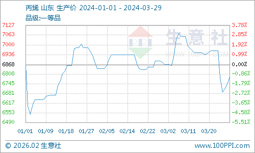 据生意社商品行情分析系统显示,3月丙烯腈市场行情小幅探涨,截至3月29日丙烯腈市场出罐自提价格在9937元/吨,较月初的9512元/吨小幅上涨了4.47%。原料丙烯价格小幅走低、液氨价格大幅上涨,丙烯腈成本面延续支撑;主要下游之一ABS开工小幅走低,需求面对丙烯腈偏弱支撑;丙烯腈开工稳中小幅提升,丙烯腈供应面小幅增加;丙烯腈行情小幅走高,截至29日华东地区丙烯腈出罐自提价格在9600~10000元/吨之间。
