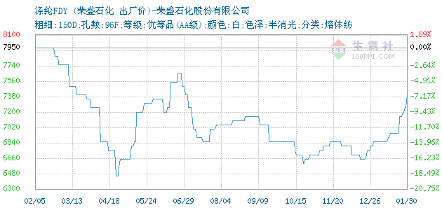 04月01日荣盛石化关于 涤纶FDY的报价为8150元/吨。 涤纶FDY的规格:粗细:150D;孔数:96F;等级:优等品(AA级);颜色:白;色泽:半消光;分类:熔体纺。该报价有效期为3天。报价提供方:荣盛石化股份有限公司。