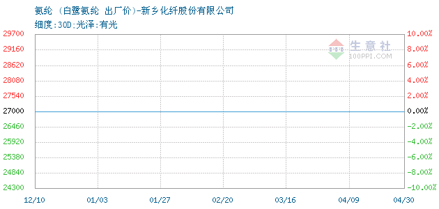 04月08日白鹭 氨纶关于氨纶的报价为30000元/吨。氨纶的规格:细度:30D;光泽:有光。该报价有效期为3天。报价提供方:新乡化纤股份有限公司。